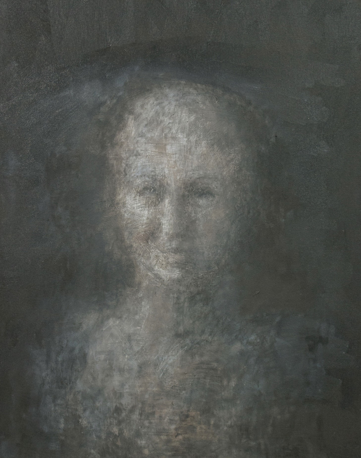 Diana Sprenger ist sehbehindert. Wenn sie ihre alltägliche Lebenspraxis und ihr Malen erfolgreich bewältigen will, muss sie Gefühle und Instinkte entwickeln, die ihre Sehkraft ergänzen. Das zeigen auch ihre Bilder. Die informellen Bilder entwickeln eine Räumlichkeit, die eher einem Blick in die Tiefe des Weltraums entspricht oder der Tiefsee als dem gewohnten dreidimensionalen Raumbewusstsein. Es gibt in ihnen – wie für sie selbst – kaum räumlich orientierende Anhaltspunkte. Die Porträts, genauer: die menschlichen Antlitze sind deshalb keine Porträts von Individuen, sondern das malerische Resultat ihrer Wahrnehmung eines Menschen. Seine Präsenz, die Intensität seiner Anwesenheit und ihr Instinkt beeinflussen ihr Malen mehr als das, was sie sehen kann. Die Porträts scheinen in ihrer Umgebung zu verschwimmen, fast so, als ob sie sich mühsam aus ihr hervorarbeiten und sich dann ebenso mühsam in ihr halten müssten. Sie wirken zwar als Figuren dieser Welt, aber fern. Wie aus einer Zwischenwelt, zu der wir gerade noch Zugang haben. Sie zeigen sich eher trotzig und abweisend und weit davon entfernt, ähnlich sein zu wollen.